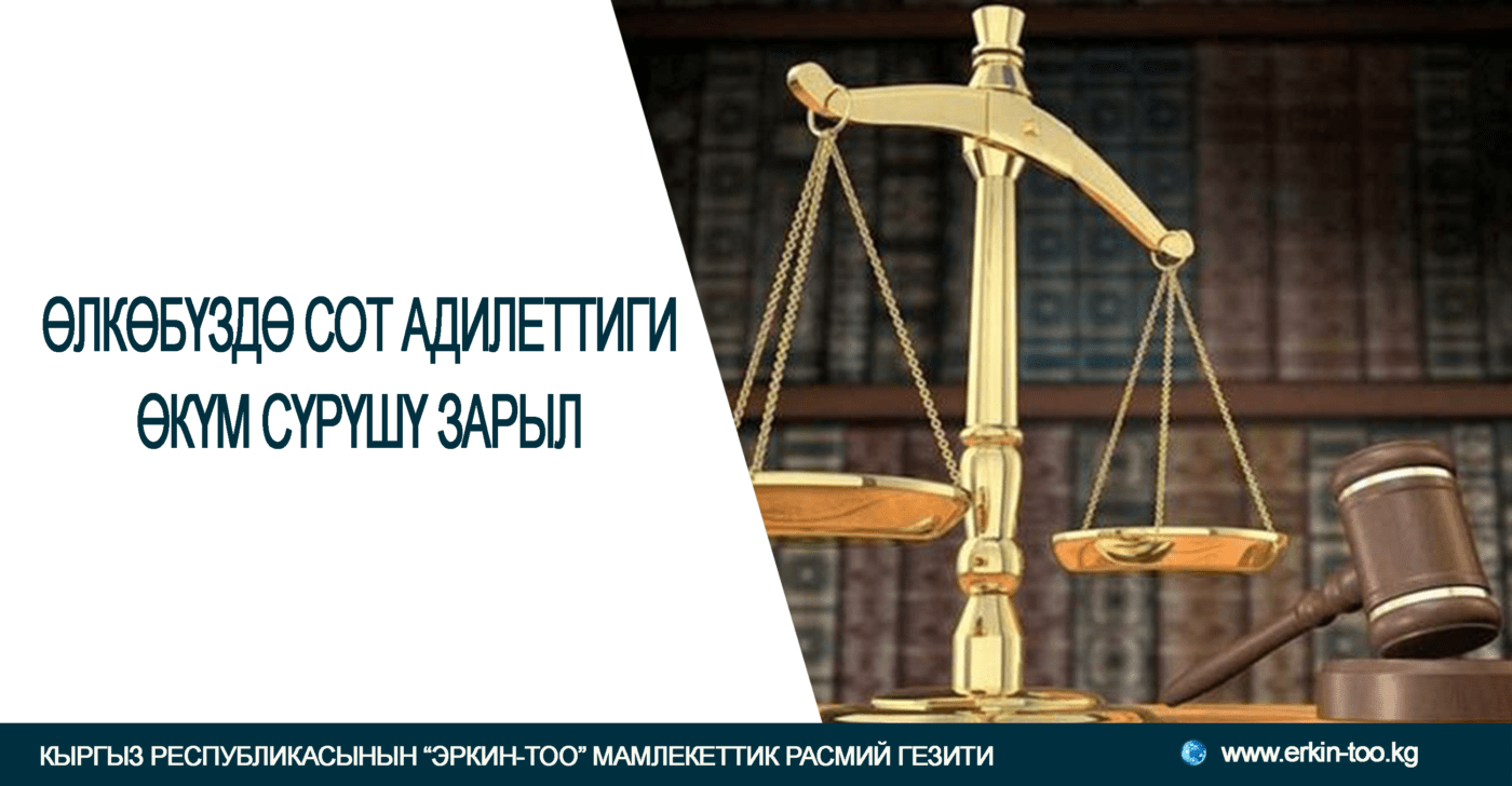 Жаңы Конституцияга ылайык, учурда сот тутумуна мыйзамдарды демилгелөө укугу берилип, тийиштүү долбоорлор каралып жатат. Ошондой эле, сот тутумунун тарыхында биринчи жолу эки ири Сот адилеттик үйлөрү — Каракол жана Жалал-Абад шаарларында ачылды. Атай кетсек, Ысык-Көлдөгү «Адилет үйүнө» Ысык-Көл облустук соту, Каракол шаардык жана Ысык-Көл административдик соттору жана Сот департаментинин облустук башкармалыгы жайгаштырылып, судьялар жана процесстин бардык катышуучулары үчүн жагымдуу шарттар түзүлдү. Бул иштерден кийин маалымат жана кызматтарды алуу бир топ эле жеңилдегенине күбө болдук.