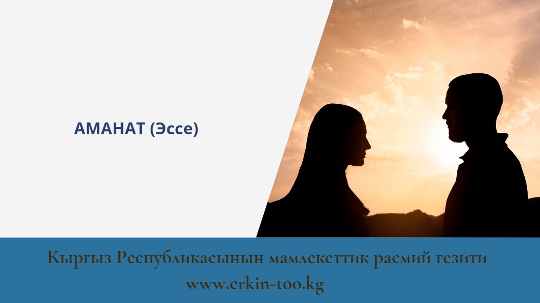 – Аманатыңызды өмүр жетсе толук аткарам. Аны Кудай алдында мойнума алдым. Эми сиздер бири-бириңиздер үчүн узак жашайсыздар. Мурда бүдөмүк болсо, азыр телефон аркылуу болсо да ачык сүйлөшүп ал-акыбалды билип турууга мүмкүнчүлүк түзүлүптүр. Сиздерди Кудайдын улуу сүйүүсү өзү коргоп алат. Мен жүрөктү адамдын тулку боюндагы Кудайдын элчиси деп түшүнөм. Ошондуктан жүрөктү тыңшап жашаган адам эч качан жаңылышпайт. Мындан ары аралыктан болсо да чогуу, бактылуу жашайсыздар. Буга чейин кимден кандай гана аманат алган болсом да, бирок бул аманат мен үчүн өтө жоопкерчиликтүү, күтүүсүз аманат болду. Мына ошол таза сүйүүнүн капшабы менен ушул күнгө жеткирген Кудай сиздерге дагы да узак өмур берет. Мен бул окуяны көркөм чыгарма катары кагазга түшүрүп, коомчулуктун назарына алып чыгам – деп иним коштошуп жолго чыкты. Мен үстүмөн бир оор жүктү алып салгандай жеңилдеп, иними узатып, кеткен жолун карап турдум…