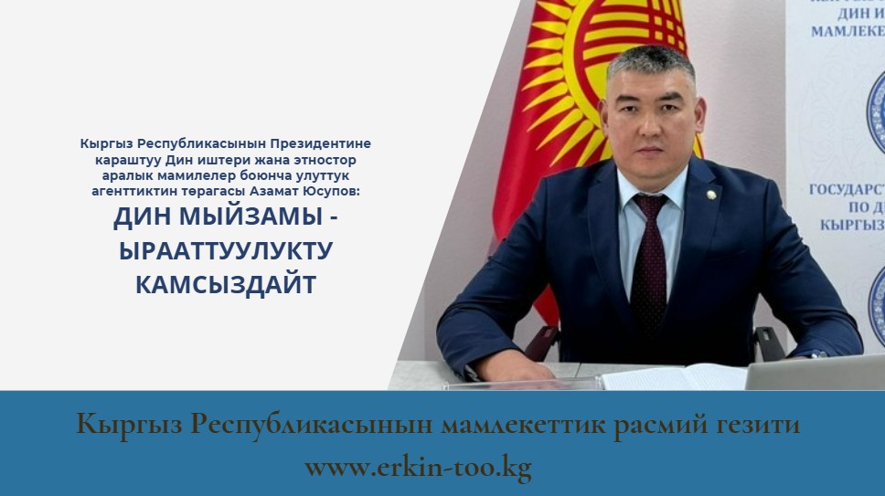– Биздин мекеме буга чейин Дин иштери боюнча мамлекеттик комиссия болуп аталып, өлкөдө дин жаатындагы иштерге жооптуу болчубуз. Жакындан тарта КРнын Президентине караштуу “Дин иштери жана этностор аралык мамилелер боюнча улуттук агенттик” болуп түзүлдүк. Анын алкагында агенттиктин курамында этностор аралык мамилелер боюнча жаңы башкармалык түзүлдү. Негизинен иш функциябыз жана жоопкерчилик кеңейди. Кыргызстан көп улуттуу өлкө. Мындан ары этностор аралык, диний, маданий байланыштар боюнча иштер камтылат.