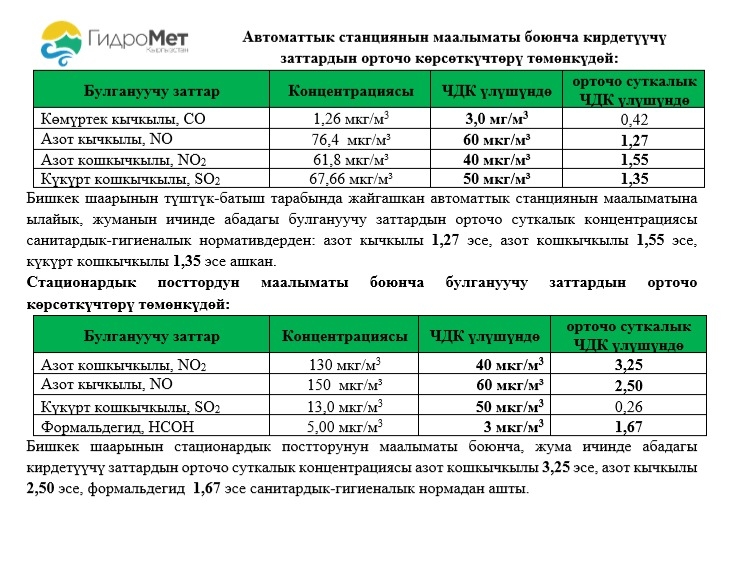 Кыргызгидрометтин маалыматына караганда, Бишкек шаарында абадагы зыяндуу заттар белгиленген чектен ашып кеткен.