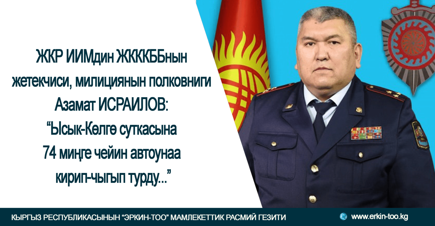 КР ИИМдин ЖКККББнын жетекчиси, милициянын полковниги Азамат ИСРАИЛОВ: “Ысык-Көлгө суткасына 74 миңге чейин автоунаа кирип-чыгып турду…”