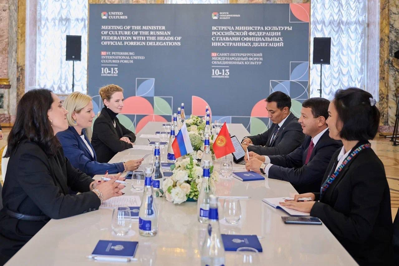 Маданият министри Мирбек Мамбеталиев менен Россия Федерациясынын Маданият министри Ольга Любимова иш-чарага болгон даярдыктарды талкуулашты. Жолугушуу Бириккен маданияттардын XI форумунун алкагында өттү.