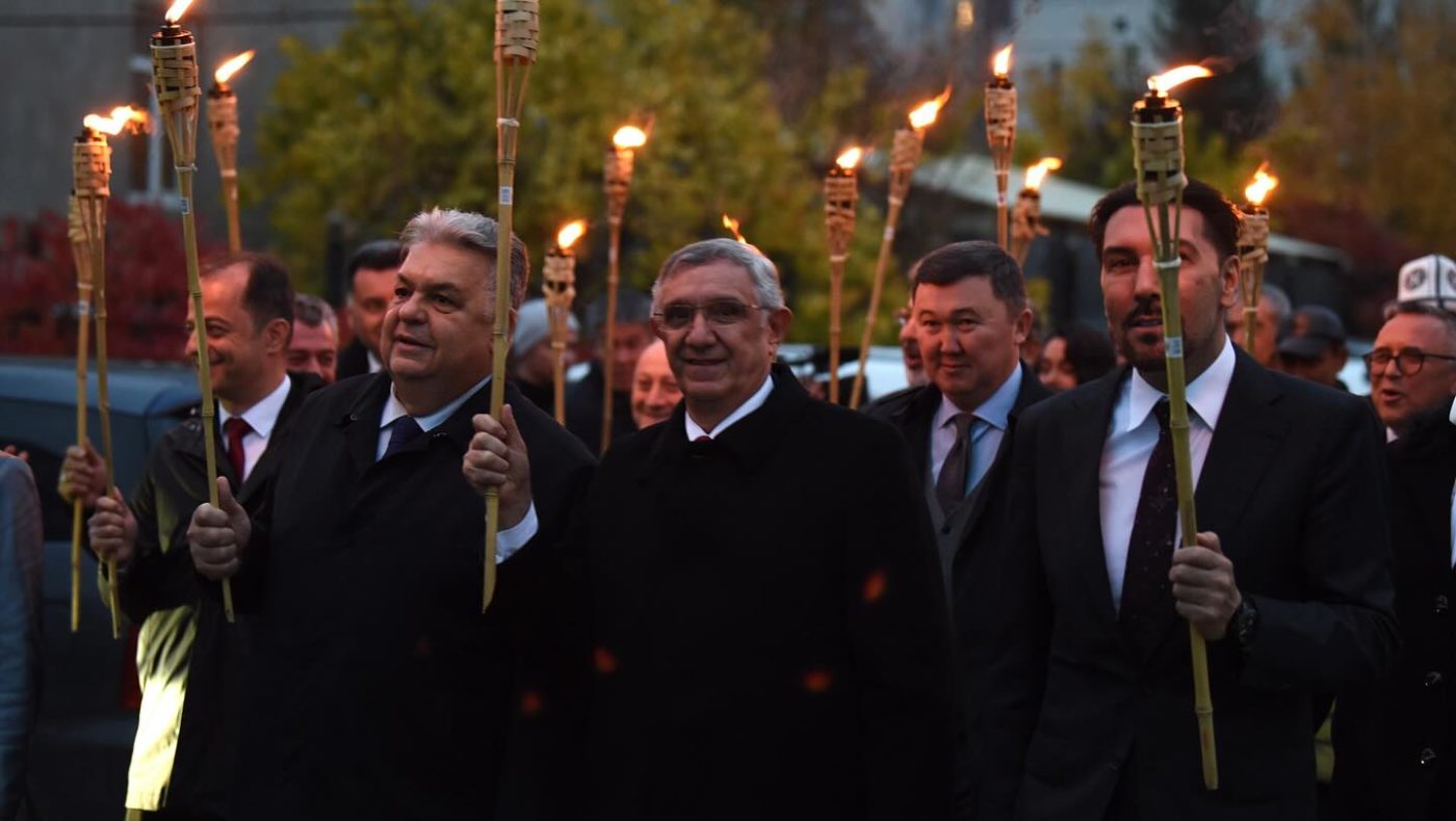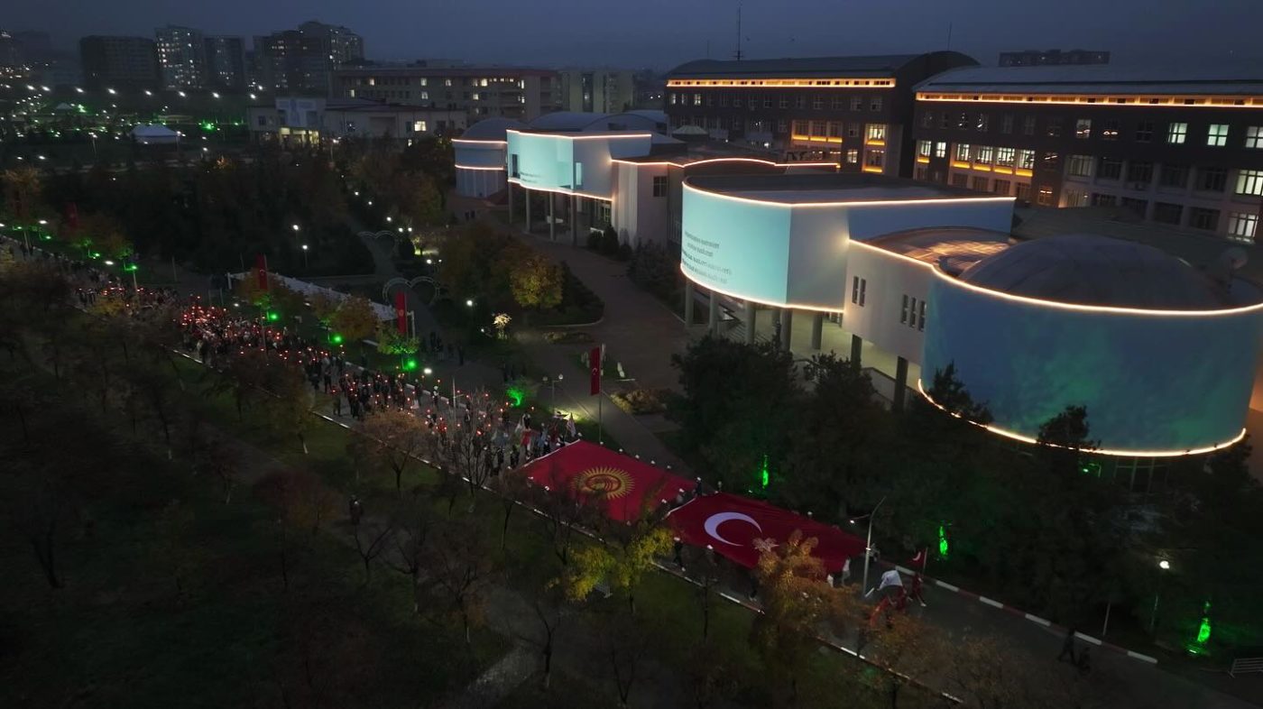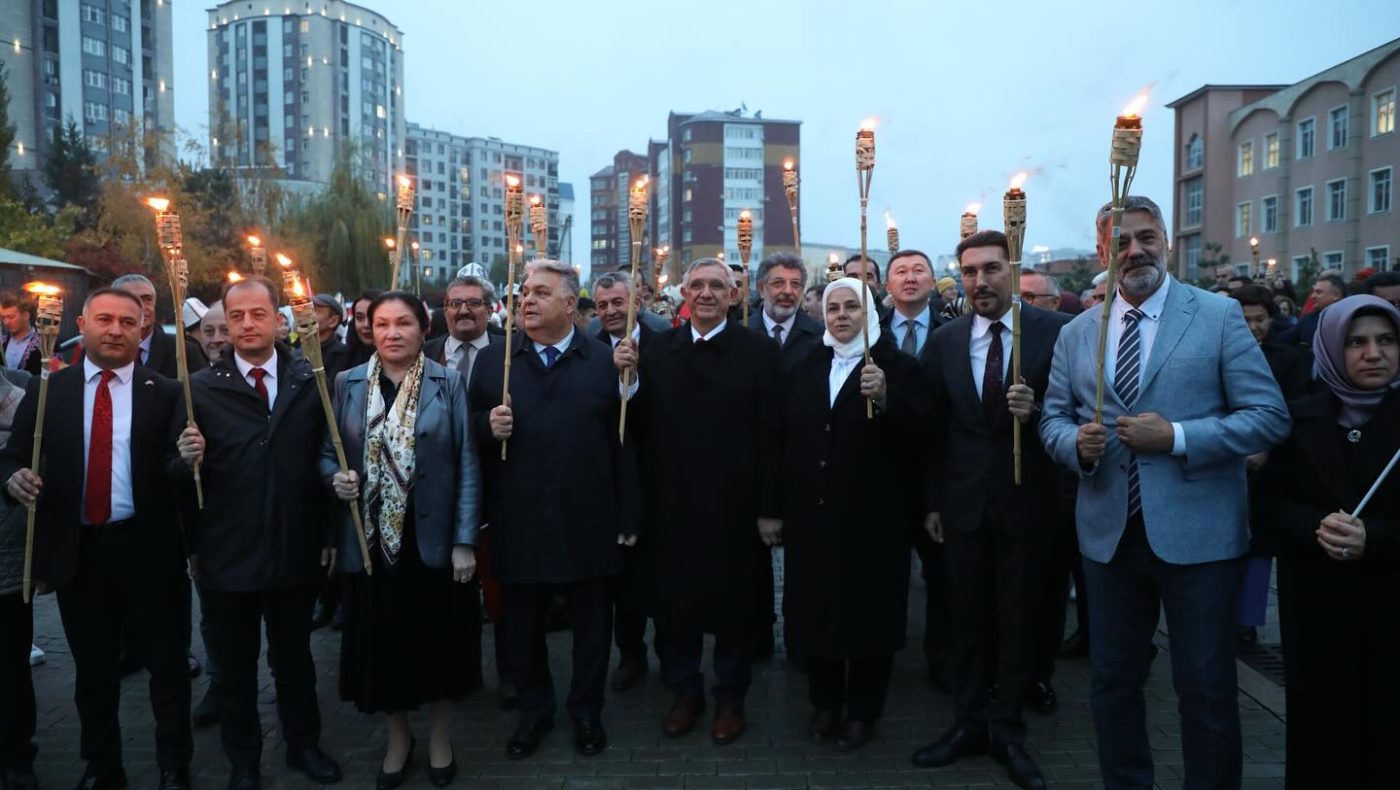 “29-октябрь Түркиянын Республика майрамы» 100 жылдыктын урматына коюлган концерттен соң шамана (факел) кармап жөө жүрүш өттү. Университеттеги «Республиканын 100-жылдыгы» жаңы көчөсүндө желектер жана факелдердин коштоосунда өткөн жөө жүрүш Республиканын 100 жылдыгын куттуктап ырдаган гимндер менен уланды