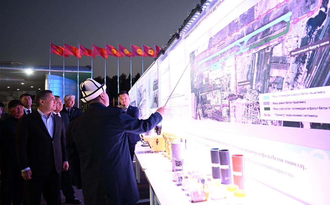 Мамлекет башчысына «Кыргызстандын эл аралык аэропорттору» ААКтын төрагасы Манас Самидинов долбоордун планы жана жүргүзүлүп жаткан иштер тууралуу маалымат берди. Президент жаңы техникаларды көрүп чыгып, учуп-конуу тилкесиндеги оңдоо иштерин текшерди.