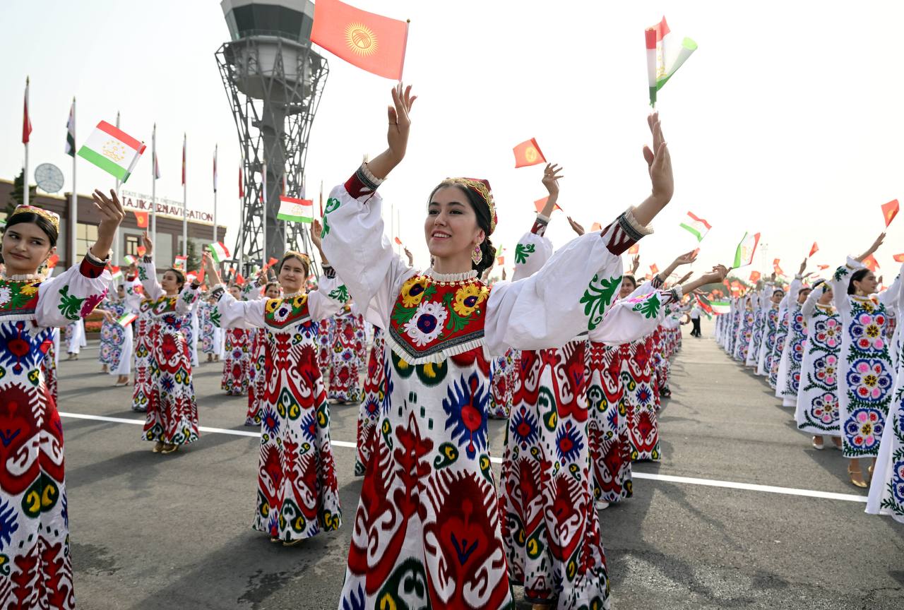 Өз ара саламдашуудан кийин, өлкө лидерлерин улуттук кийим кийген улан-кыздар тосуп алышты. Андан соң мамлекет башчыларына 500дөн ашуун артист катышкан чакан концерттик программа көрсөтүлдү.